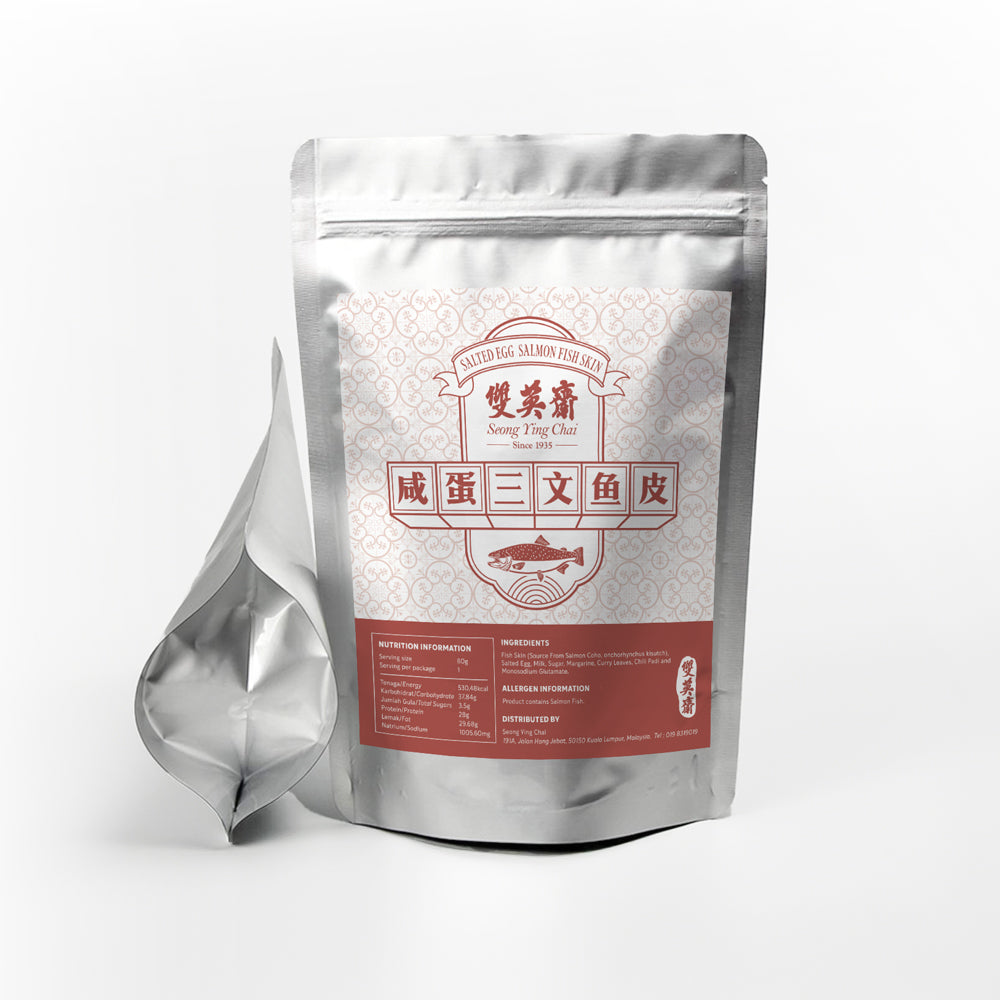 Seong Ying Chai’s Salted Egg Salmon Fish Skin is the ultimate indulgent snack. Made from premium salmon fish skin, each piece is perfectly crisped and generously coated with rich salted egg seasoning, enhanced with a touch of curry leaves and chilli for a burst of flavour. Whether as a snack or a party treat, it’s sure to be a crowd-pleaser!