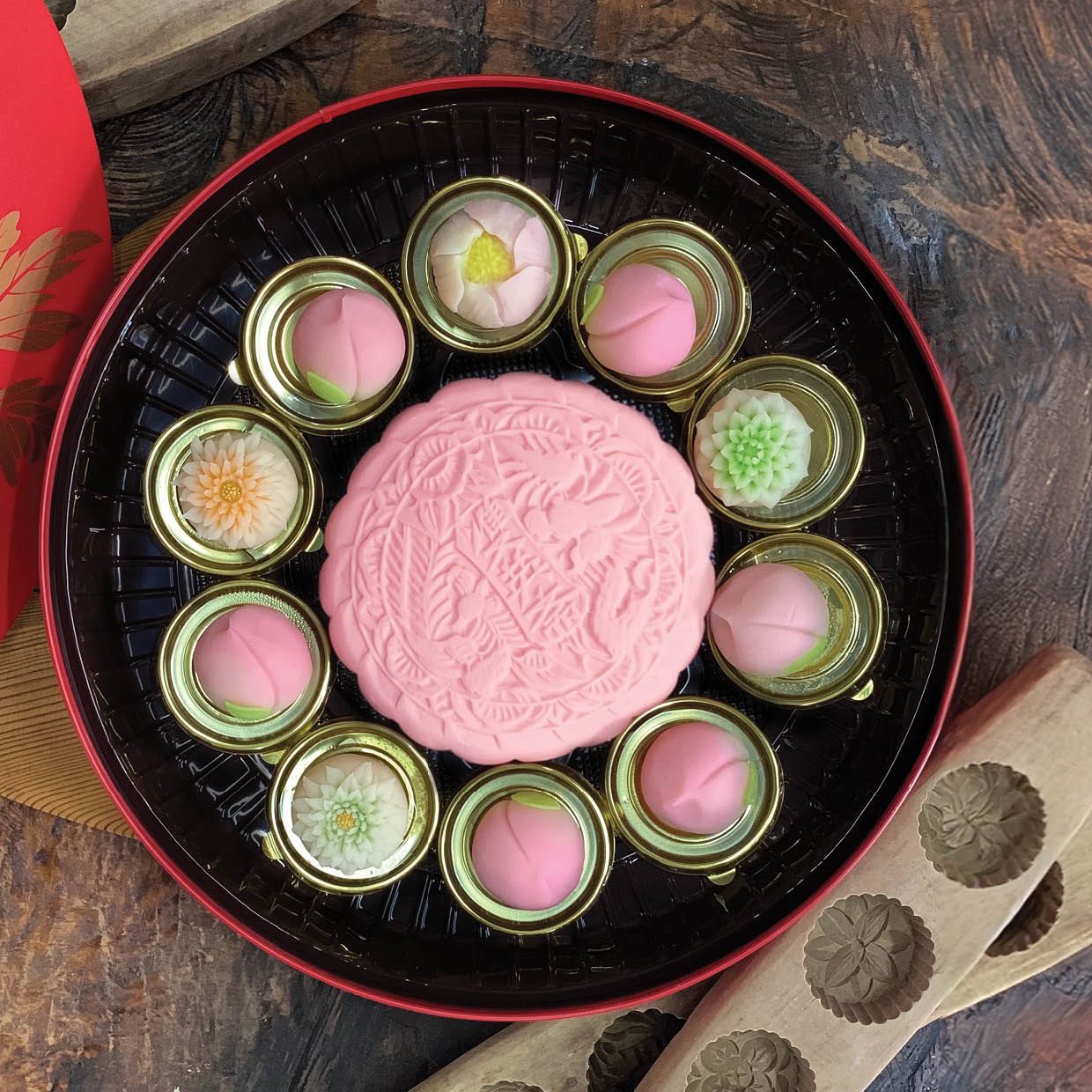 The Seong Ying Chai Wonders Premier Gift Box is presented in a huge round metal box adorned with gold peony to symbolise prosperity and happiness during this festive season.